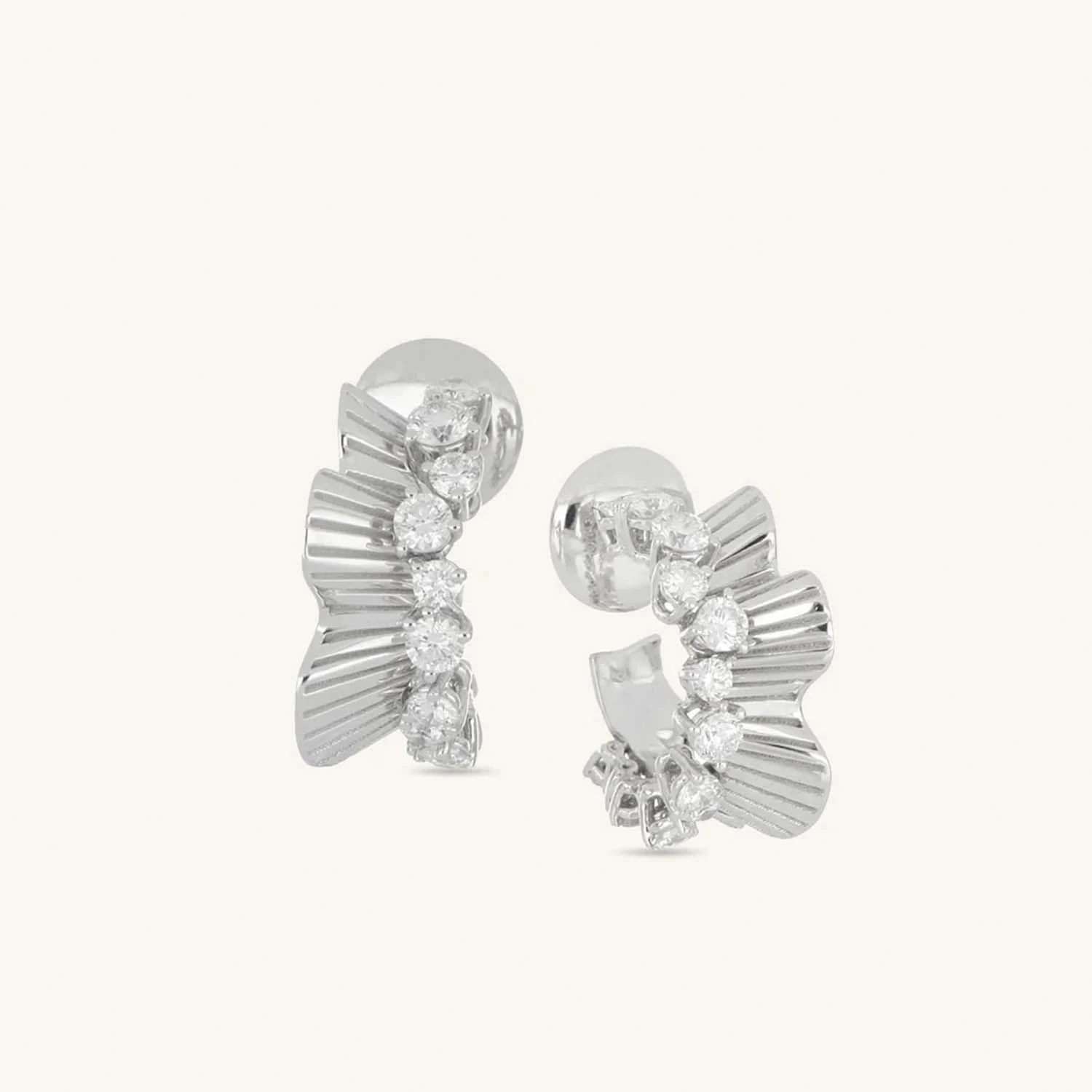 Серьги из 18-каратного белого золота с бриллиантами из коллекции Rays of Sun — это совершенное сочетание элегантности и утонченности. Уникальный дизайн с изогнутыми линиями и матовыми текстурами создает захватывающий эффект света и тени. Великолепно сверкающие бриллианты подчеркивают роскошь украшения, превращая серьги в идеальный акцент для любого образа. Эти серьги идеально подойдут для особых случаев, добавляя нотку изысканности и блеска в каждый момент.