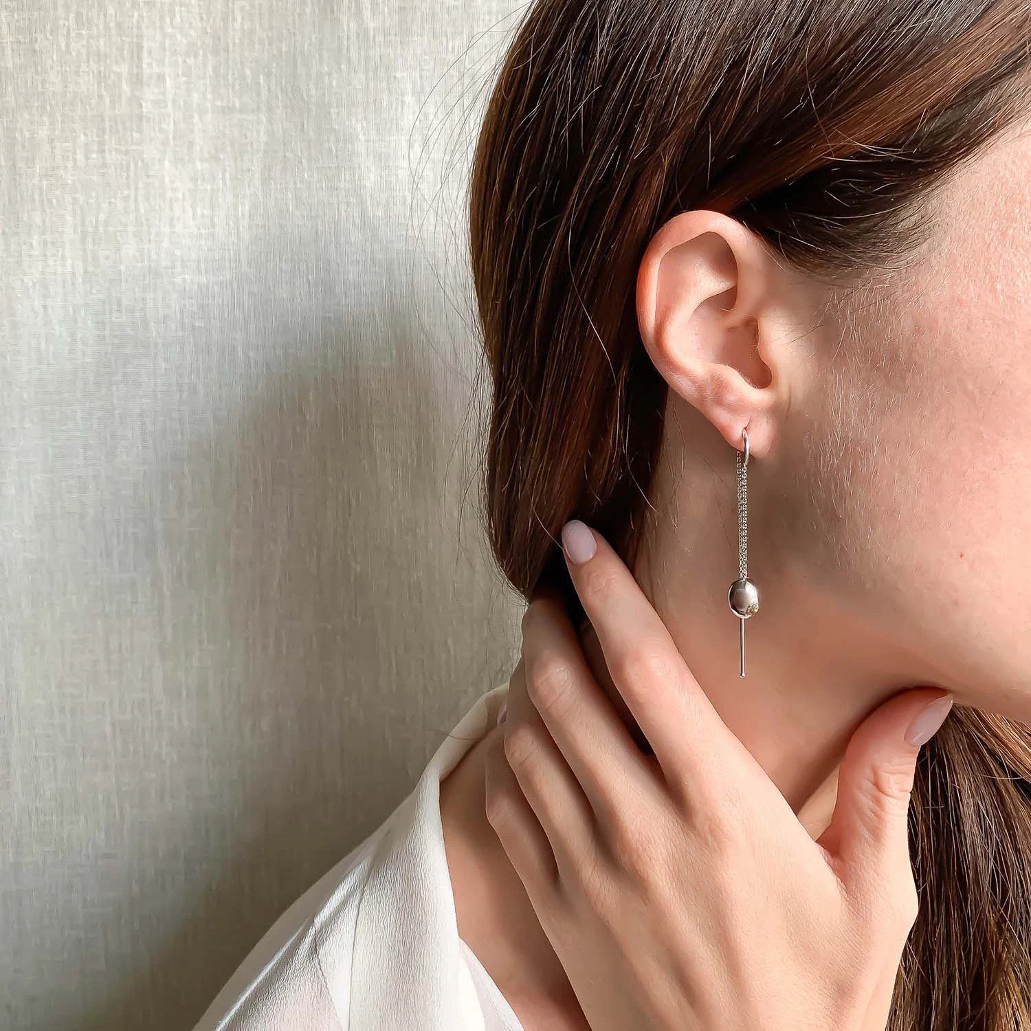 Серьги-цепочки Armillas Acqua из 18 каратного белого золота 18 карат с каплевидными элементами, вдохновлённые мягкими и изящными формами водных капель, выполнены в лаконичном минималистичном дизайне.