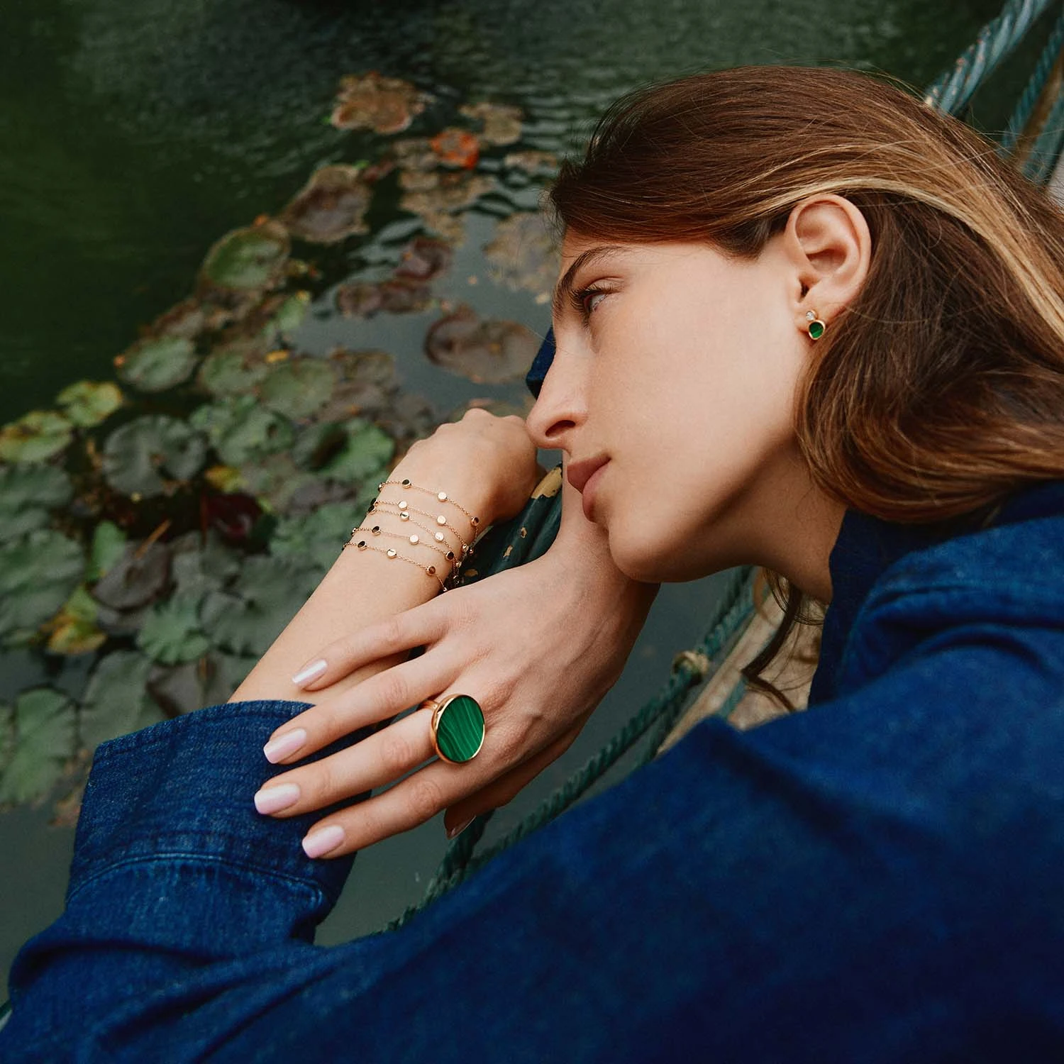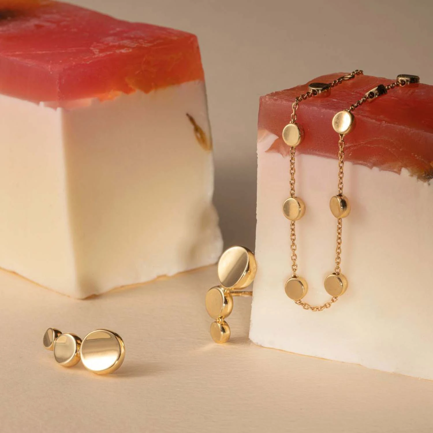 Браслет из жёлтого золота 18 карат. Украшение наполнено лёгкой энергией и создаёт ощущение радости, а подвижные золотые цепочки мягко откликаются на каждое движение лёгким, приятным звоном.