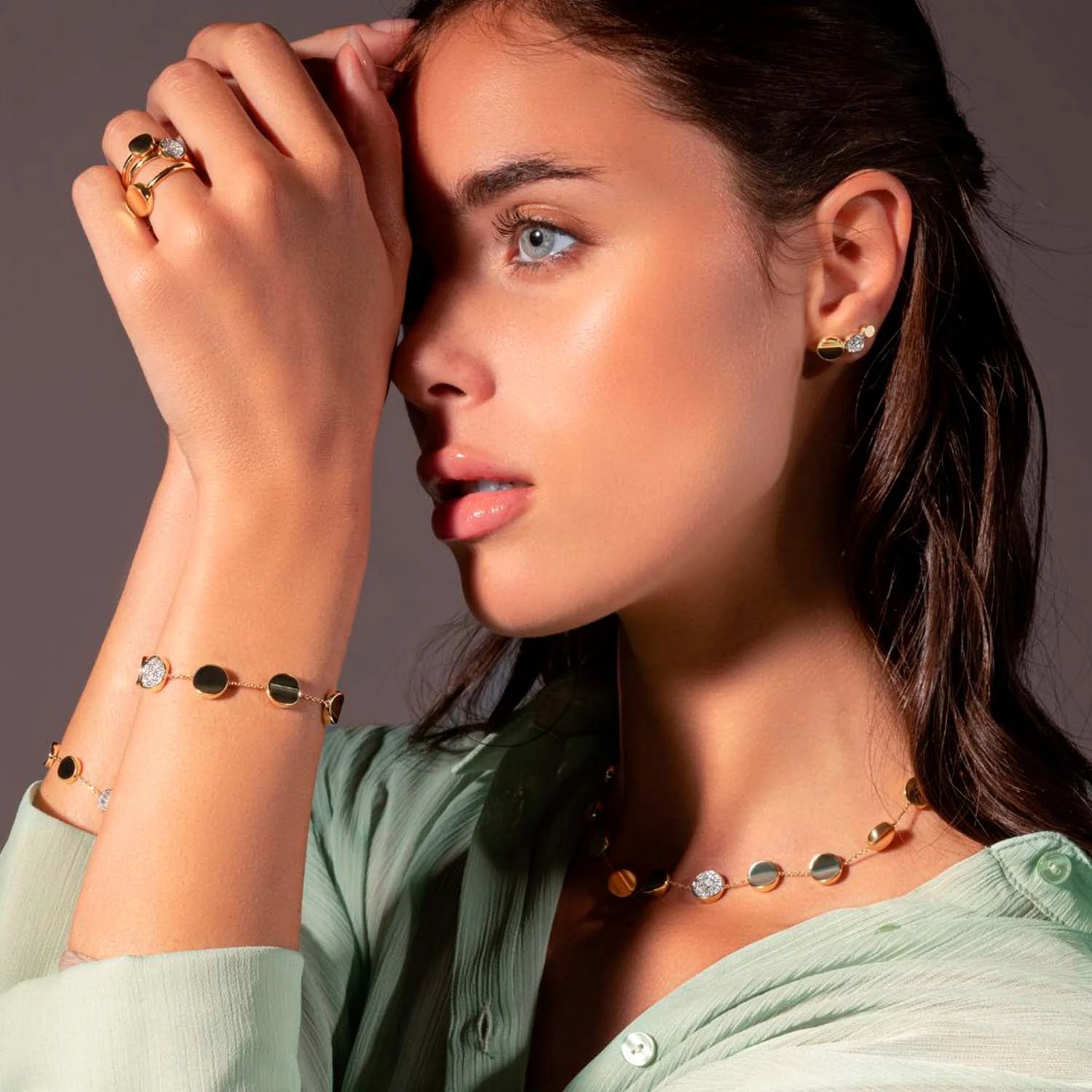 Сережки-пусеты из жёлтого золота 18 карат с бриллиантовым паве — изысканное украшение, которое добавляет образу мягкое сияние и утончённость.