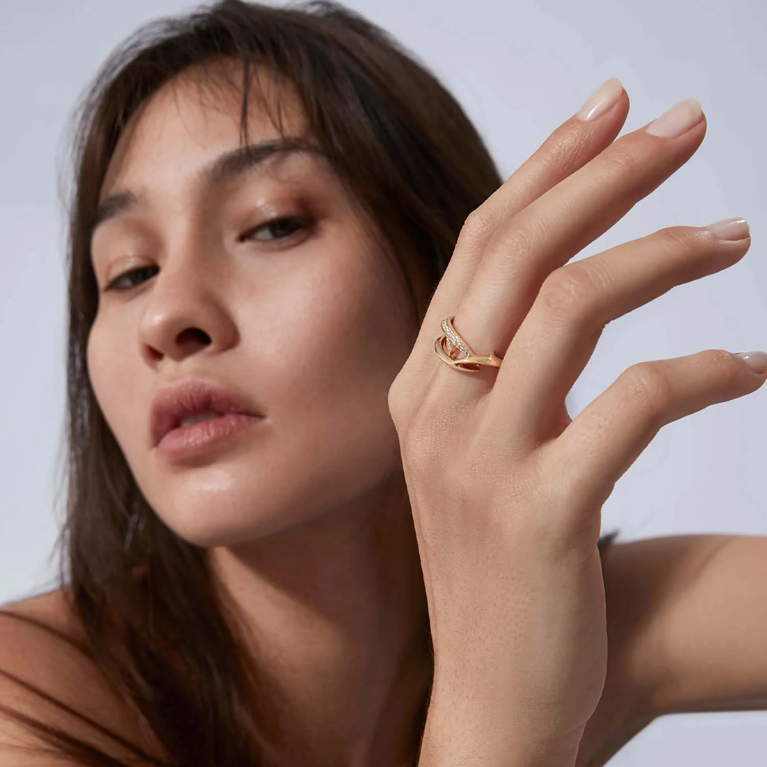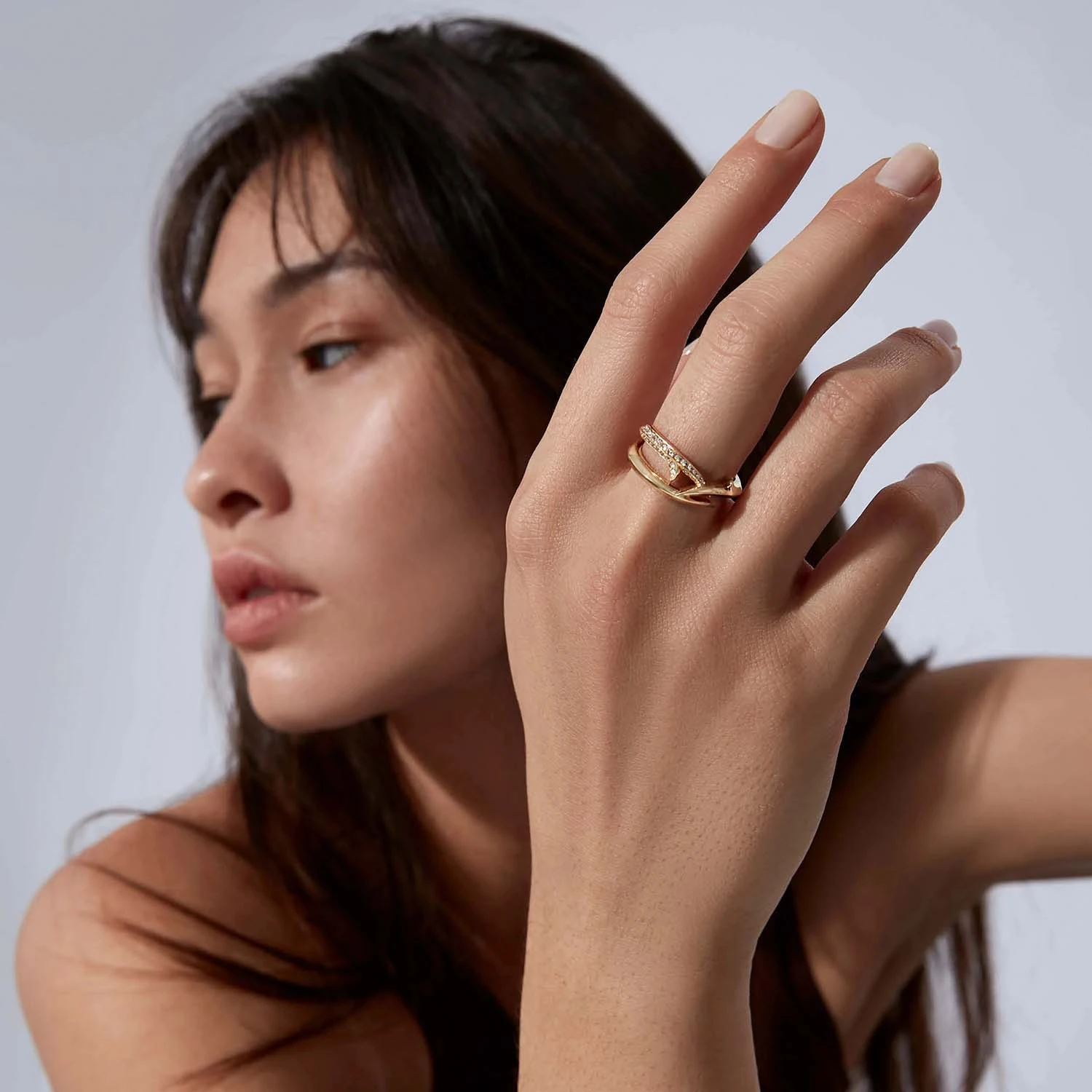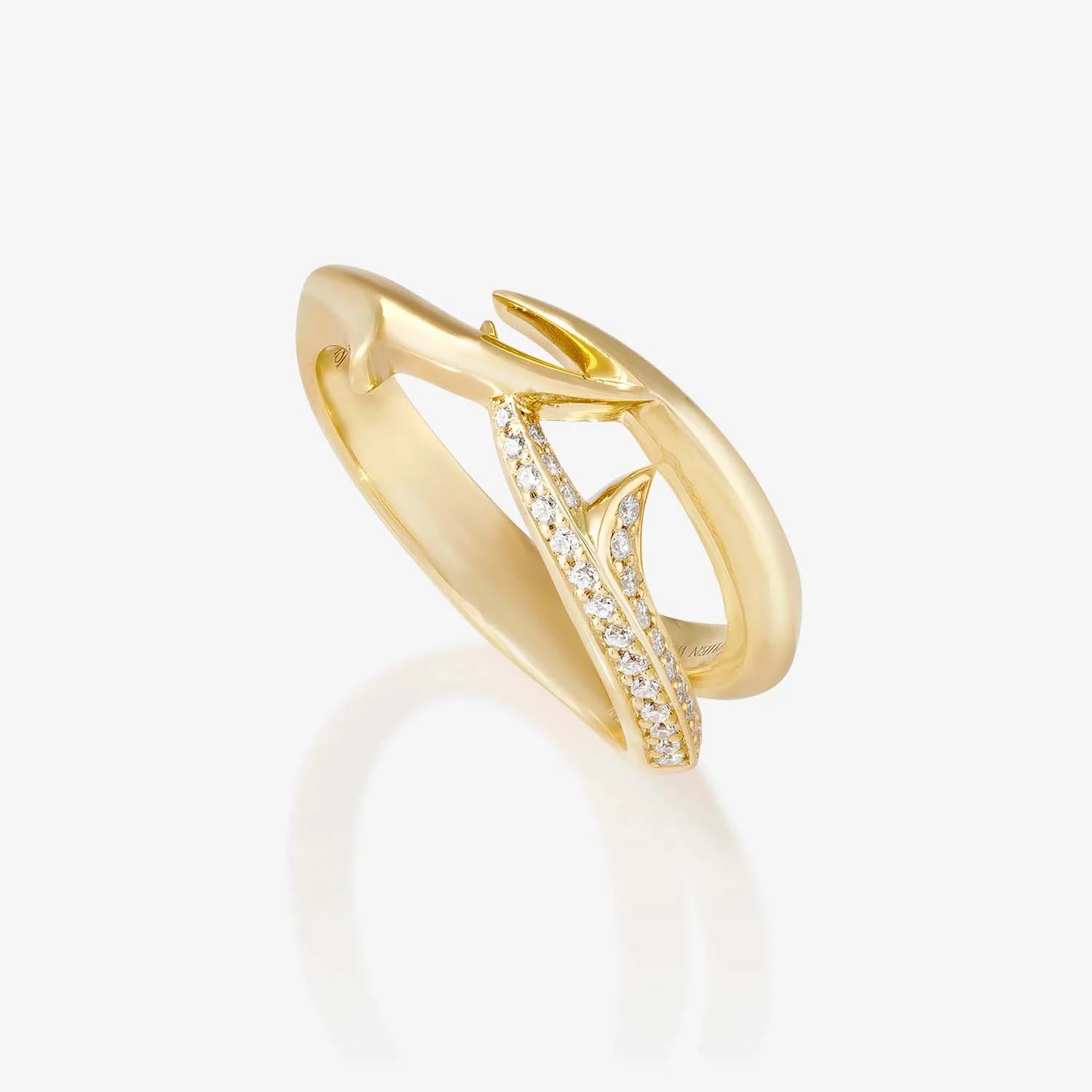 Кольцо из желтого золота 18 карат с паве из белых бриллиантов. Ширина 1,9 мм. Общий вес: 6 г.