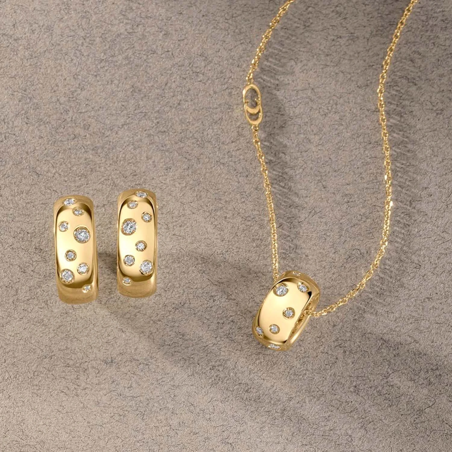 Серьги-кольца из жёлтого золота 18 карат — классическая модель, украшенная природными белыми бриллиантами. Созданные в эстетике коллекции Forever BRIO, они отличаются лёгкостью дизайна, а сияние бриллиантов делает их универсальным и изысканным акцентом для любого образа.