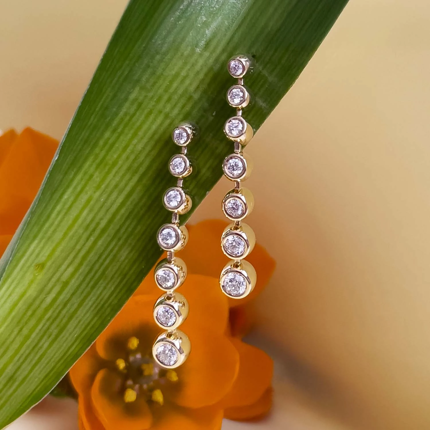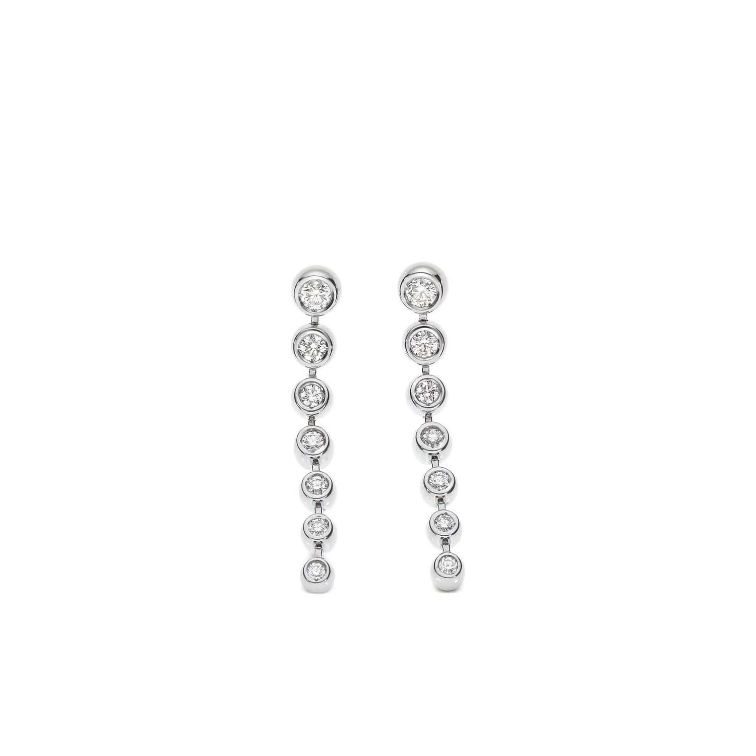 Серьги из белого золота 18 карат и бриллиантов, изящное и в то же время сияющее воплощение современной элегантности – призвано передать красоту света и движения. Вес золота: 5,98 г.