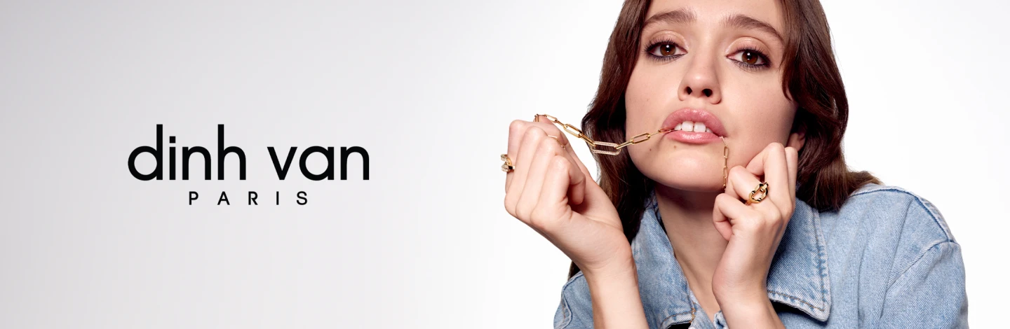 Dinh Van — французский бренд люксовых украшений, известный своим минимализмом и современным стилем. Бренд создаёт элегантные украшения с чистыми линиями и узнаваемым дизайном, где каждая деталь продумана до совершенства.