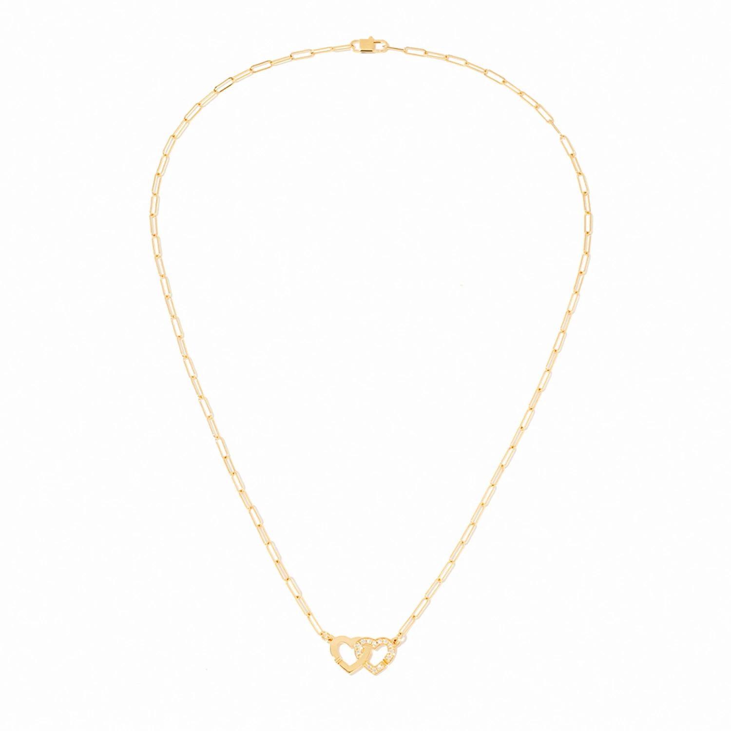 Колье Double C?urs из жёлтого золота 18 карат, украшенное бриллиантами. Два переплетённых сердца, инкрустированные камнями, становятся символом вечного союза и гармонии. Сияние бриллиантов подчёркивает выразительность формы, а благородный оттенок жёлтого золота придаёт украшению мягкость и элегантность. Современное и романтичное, колье изящно дополняет образ. Длина: 42 см.