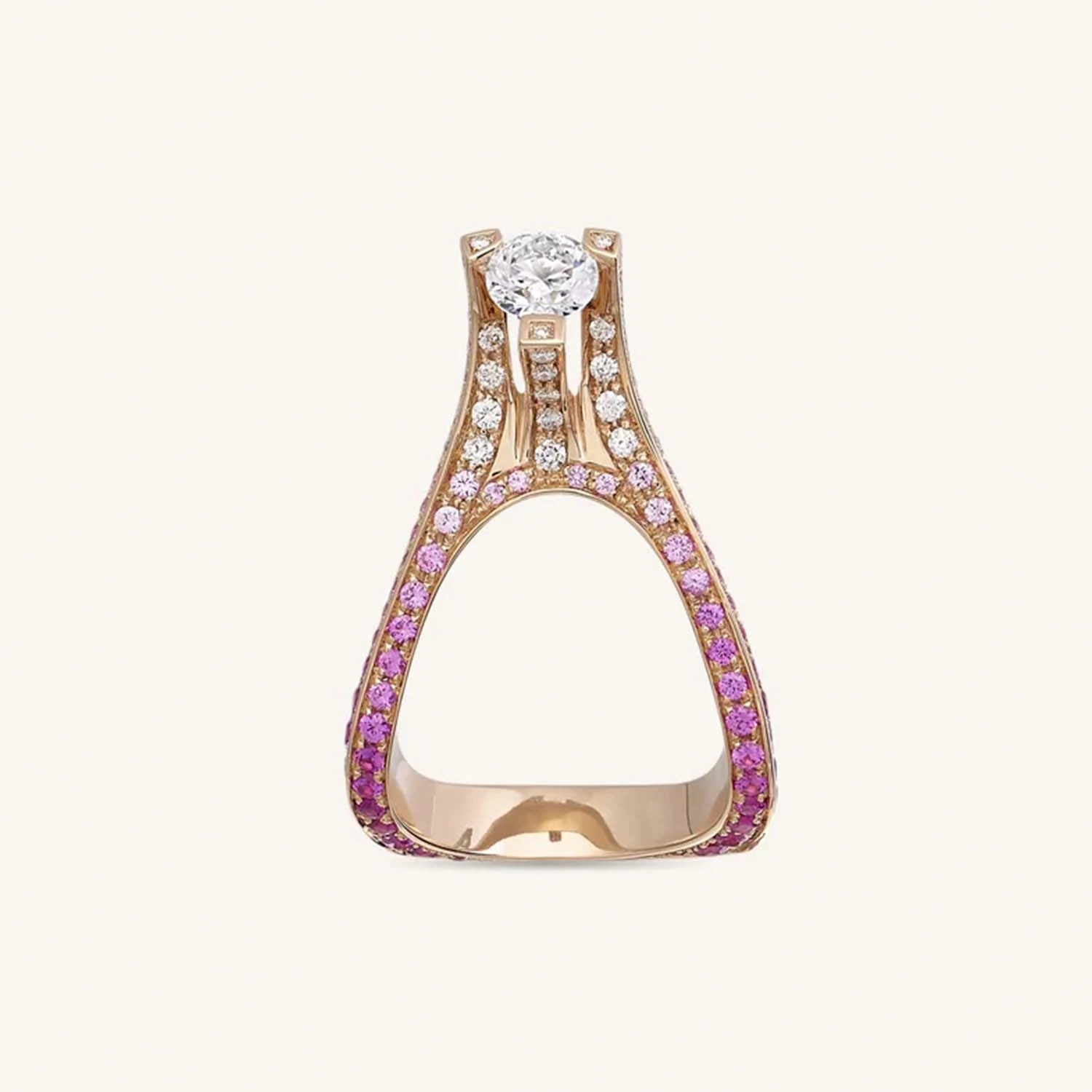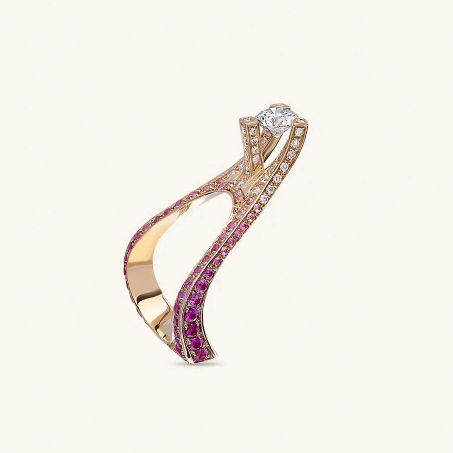 The 18K rose gold ring from the Linearity collection by Palmiero is an elegant and refined piece featuring unique stones of rare cuts. Its distinctive optical effect comes to life when worn, adding exquisite luxury and elegance to your look. This ring will be a stylish accent, enhancing any outfit while highlighting your sophistication and taste.
