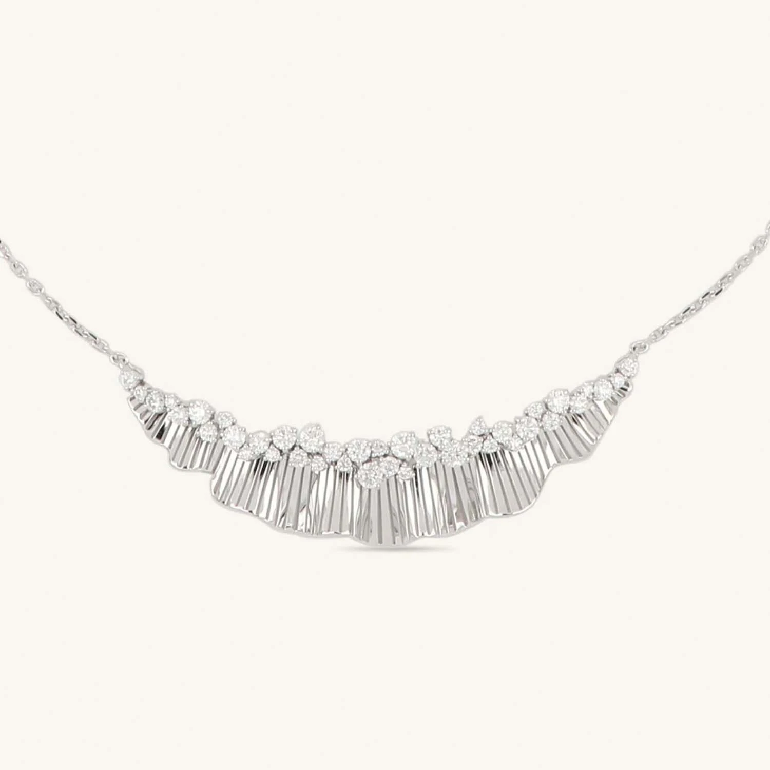 Necklace made of 18K white gold with diamonds from the Rays of Sun collection is the embodiment of elegance and refinement. Its unique design, featuring curved lines and matte textures, creates a magical play of light and shadow. The brilliantly sparkling diamonds enhance the luxury of the piece, making the necklace a perfect accent for any look.