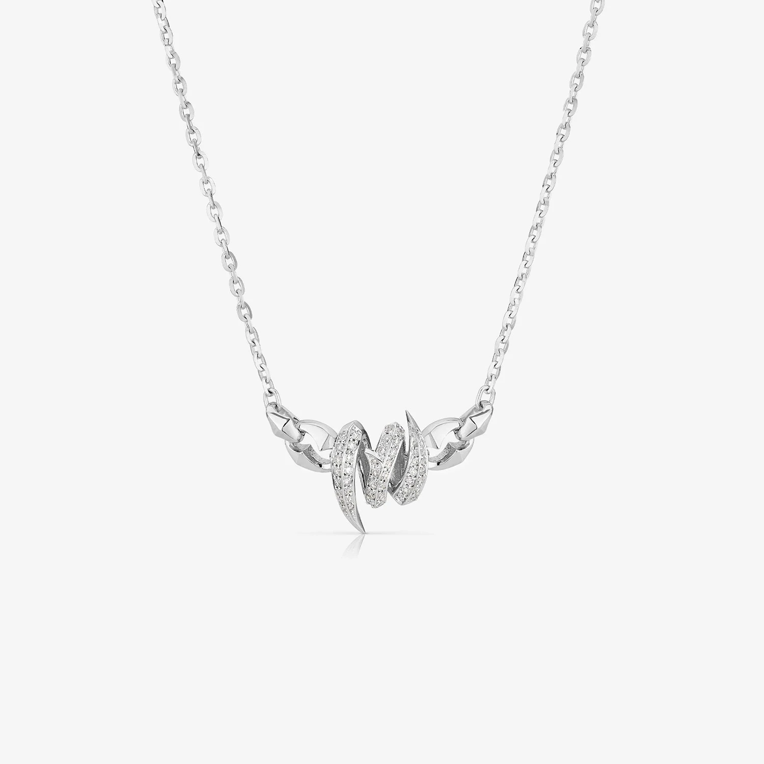 18 carat white gold necklace with diamond pave setting. Chain length is 40.64 cm.