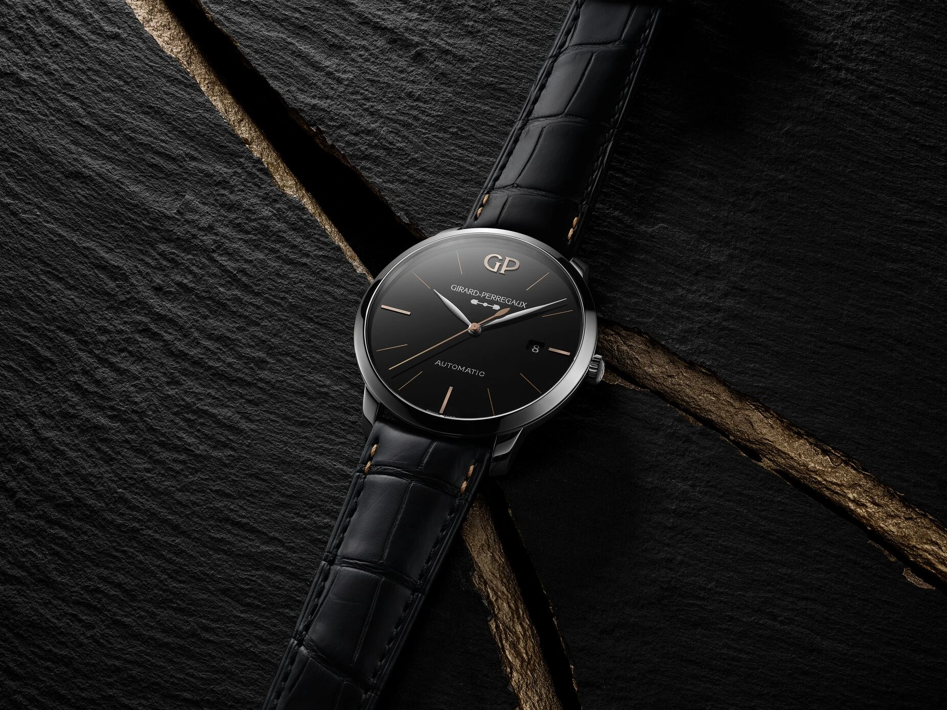 Минималистичные механические часы с ультратонким корпусом, закругленными циферблатами, стрелками в форме листа и коническими часовыми метками – классика во всех смыслах этого слова.
