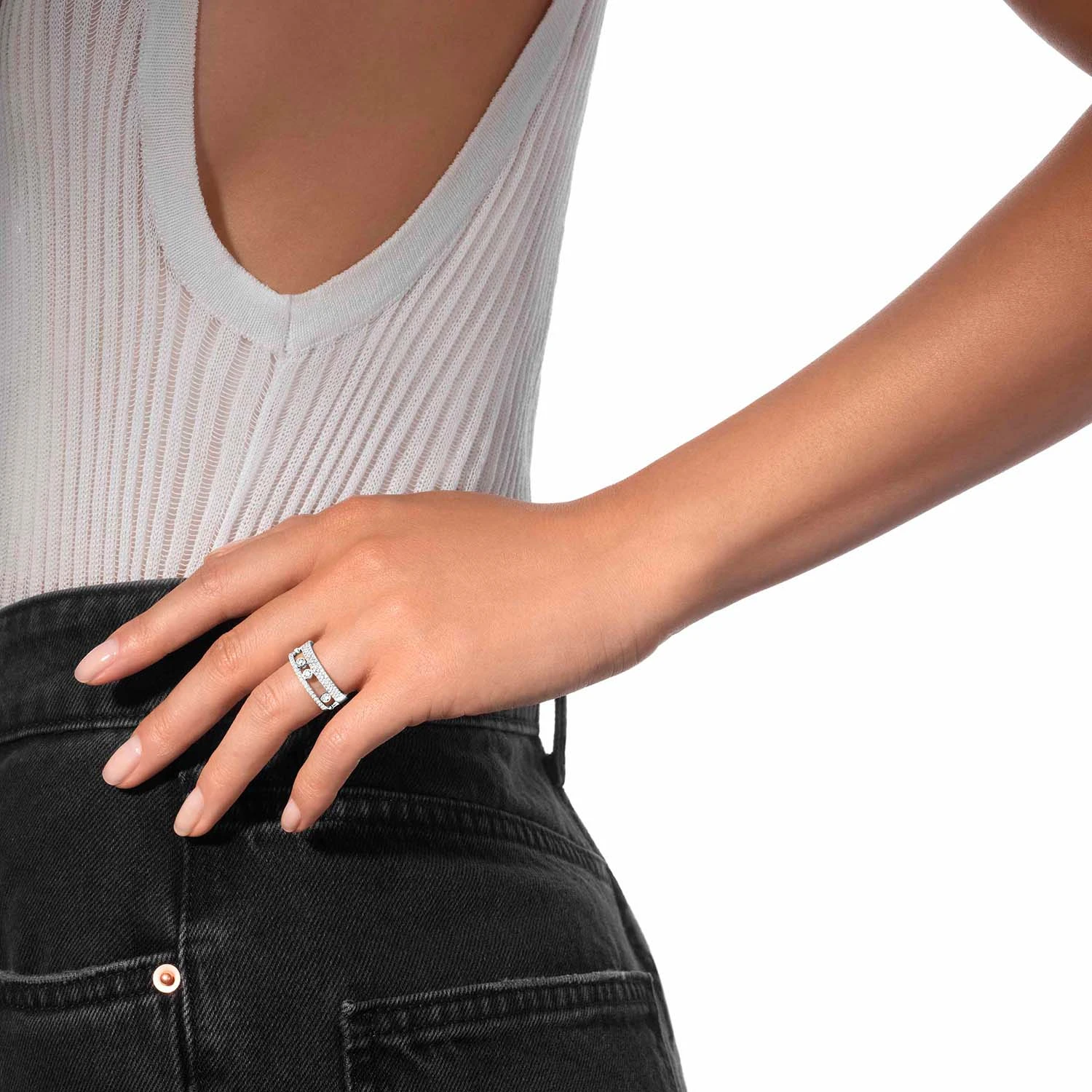 18 carat white gold ring with diamond pave setting, movable diamonds. Width 7mm