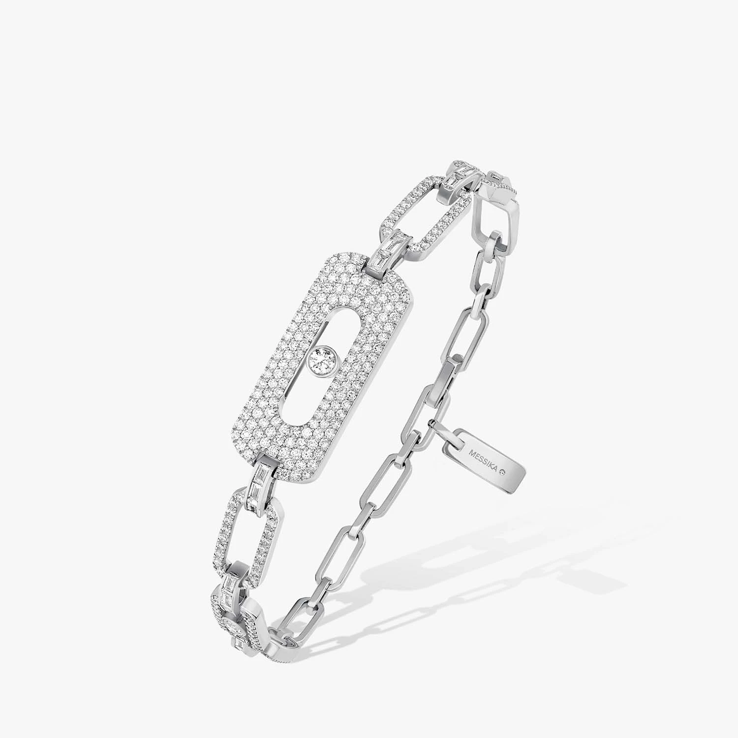18 carat white gold bracelet with diamond pave setting, movable diamond. Chain length 14-18 cm