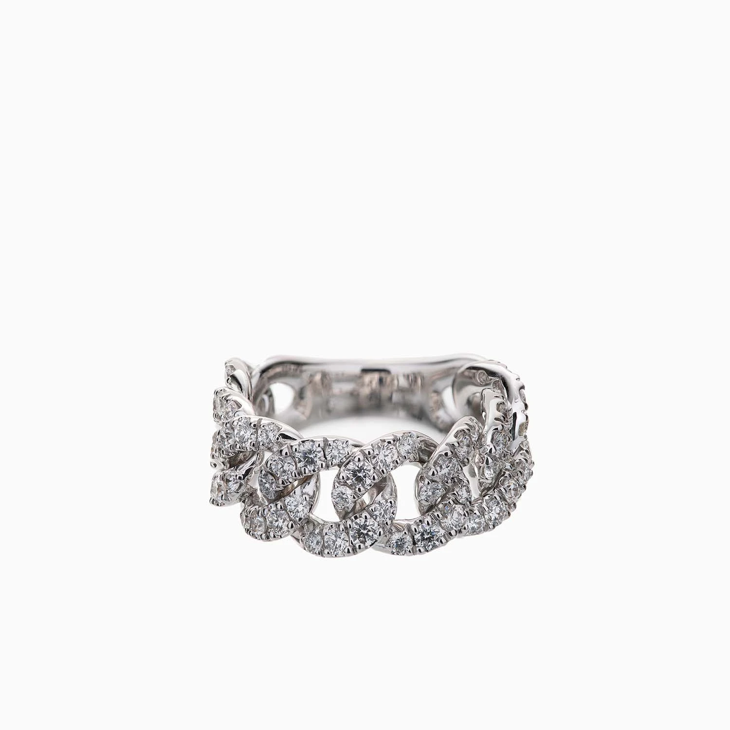 A 18K white gold ring with diamond pave. The ring features delicate chain links that add lightness and grace, making it perfect for any occasion. Total weight: 8.20 g.