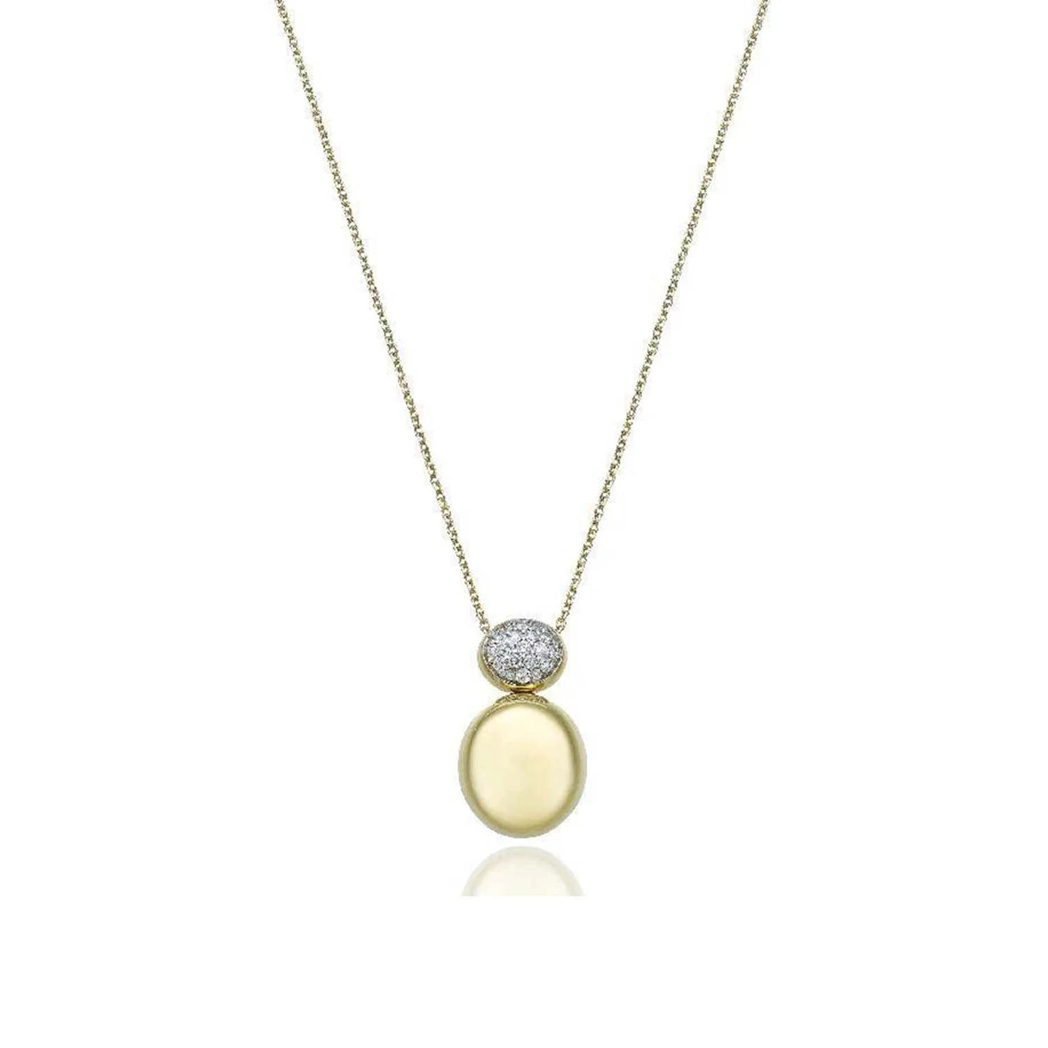 Колье Armillas Acqua из жёлтого золота 18 карат, украшенное бриллиантовым паве. Модель выполнена в фирменной эстетике коллекции, где плавные контуры и каплевидные элементы перекликаются с формами воды. Бриллианты добавляют акцент сияния, подчёркивая чистоту линий и высокое качество исполнения.