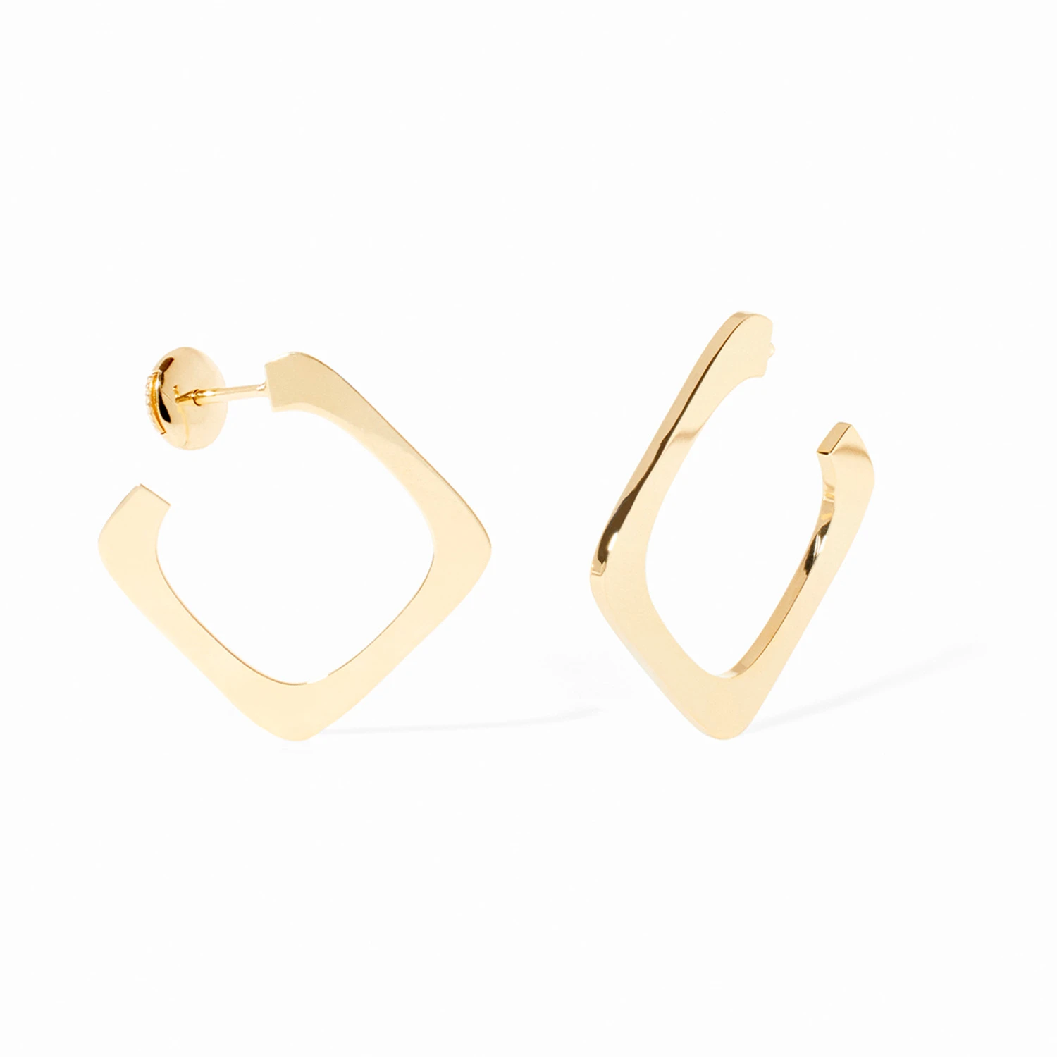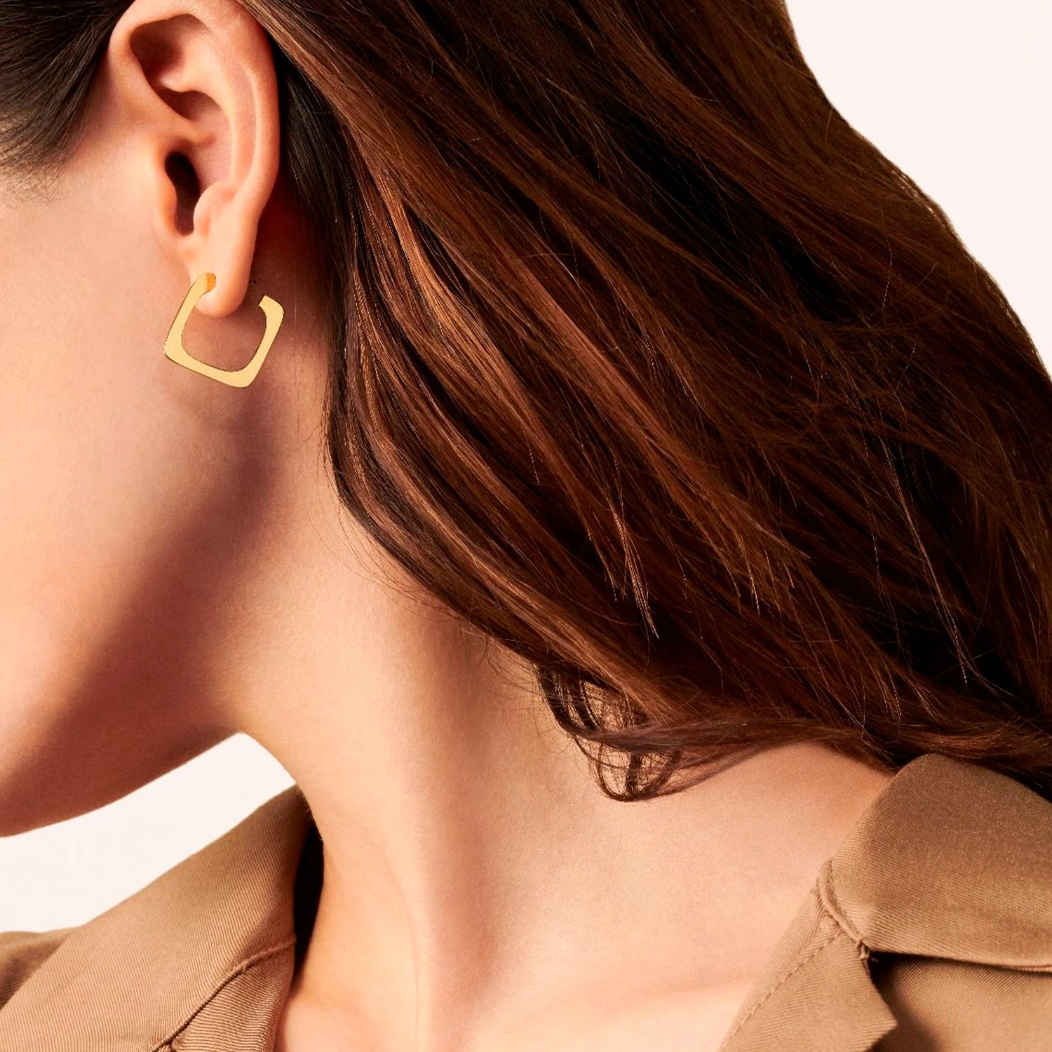 Серьги Impression из жёлтого золота 18 карат — интерпретация квадрата с мягко скруглёнными углами в лаконичной графичной форме. Чёткая геометрия сочетается с плавностью линий, а тёплый блеск золота подчёркивает выразительность силуэта, создавая изящный акцент с современным характером.