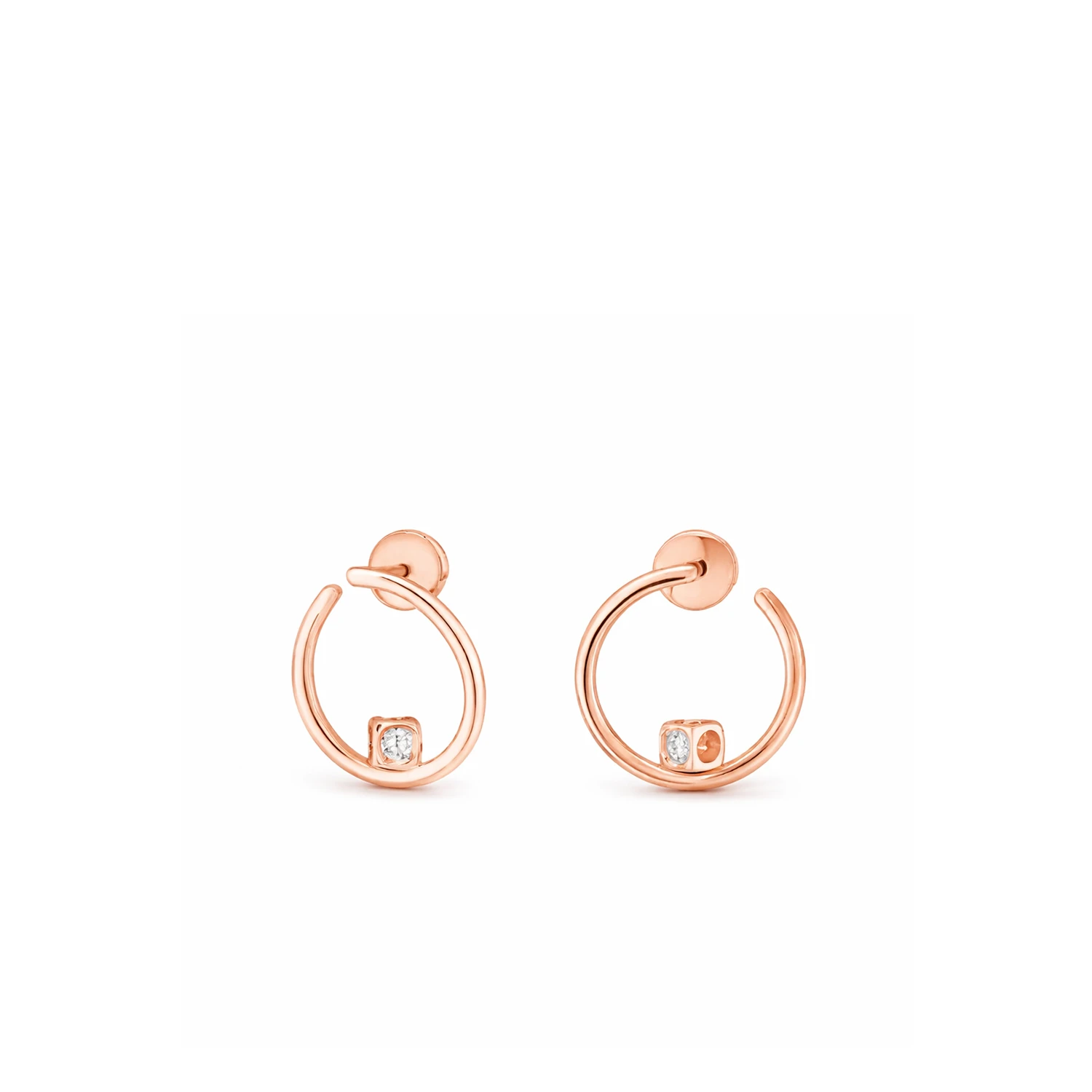 Серьги-креолы Le Cube Diamant из розового золота 18 карат с бриллиантами — гармония тёплого металла и строгой геометрии. Контраст округлого сияния бриллиантов и чёткой формы оправы создаёт выразительную композицию с современным характером. Диаметр 17 мм подчёркивает изящную пропорциональность модели, а мягкий блеск розового золота придаёт украшению утончённую элегантность вне времени.