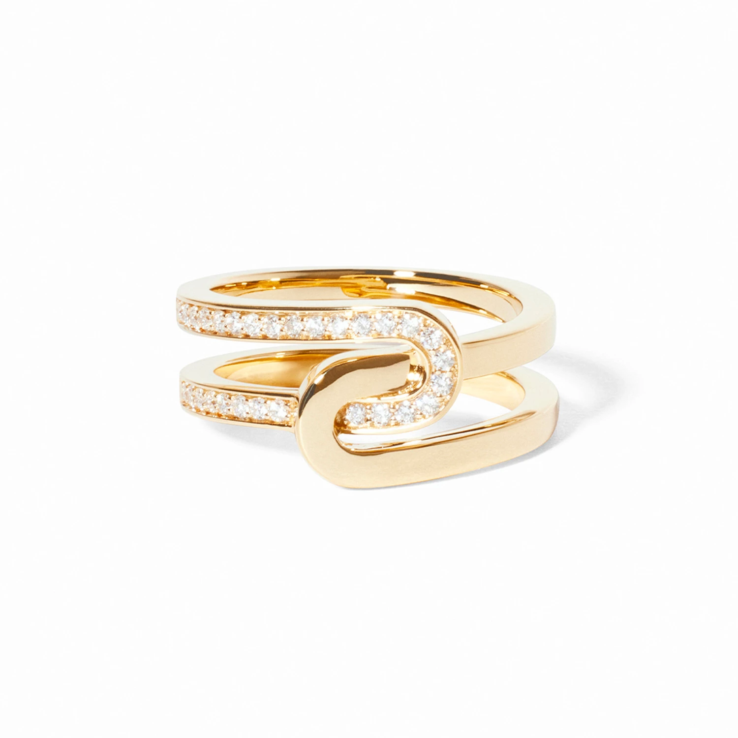 Кольцо Maillon Star из жёлтого золота 18 карат с бриллиантами — выразительное продолжение универсальной ювелирной линии. Прямоугольная форма с мягко скруглёнными углами создаёт узнаваемый силуэт, а два переплетённых фирменных звена формируют символичный акцент. Полупавированная инкрустация добавляет деликатное сияние, подчёркивая тёплый блеск золота и современный характер украшения, которое органично дополняет любой образ.