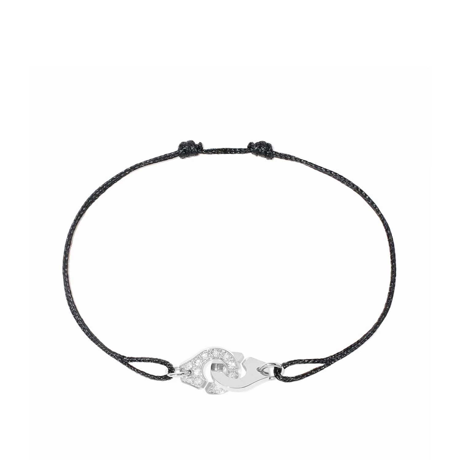 Браслет Menottes XS на текстильной нити из белого золота 18 карат с паве из бриллиантов — утончённая версия знакового мотива dinh van. Фирменный элемент Menottes, украшенный бриллиантами, наполняет украшение мягким сиянием и подчёркивает символику связи. Холодный блеск белого золота усиливает сияние камней, создавая элегантный и современный акцент. Регулируемая текстильная нить делает браслет лёгким и удобным для повседневной носки.