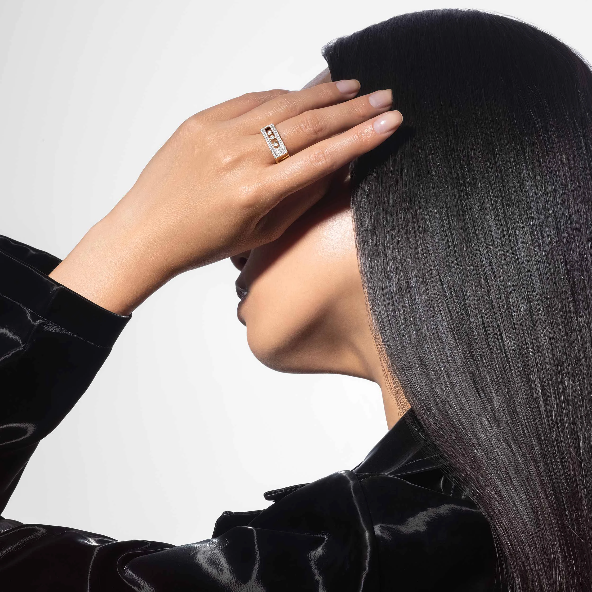 Кольцо Move Noa из желтого золота 18 карат, украшенное бриллиантовым паве. Ширина 8 мм