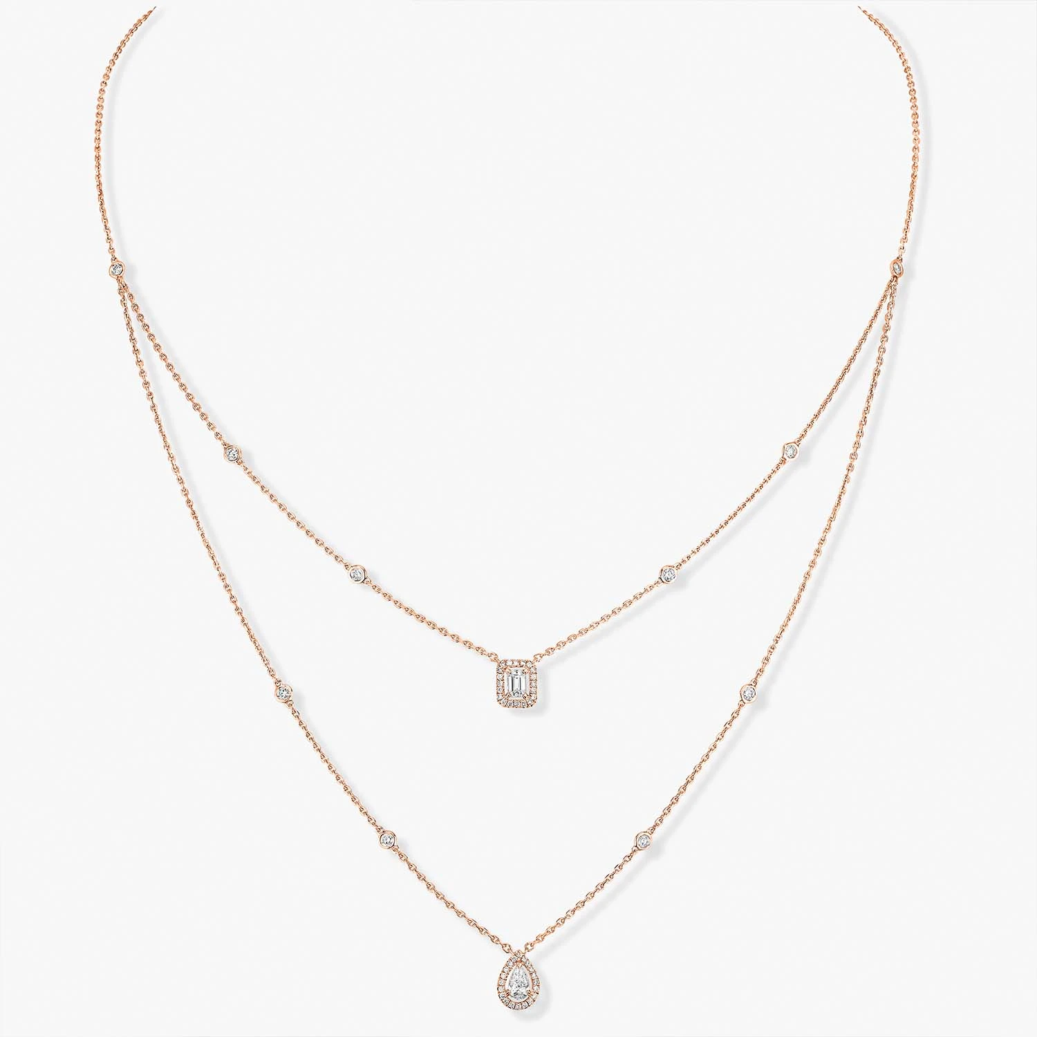 Колье из розового золота 18 карат с бриллиантами, грушевидной огранки. Вес центральных камней 0,20 карата каждый, качество F/VS, Длина цепочки 60 см