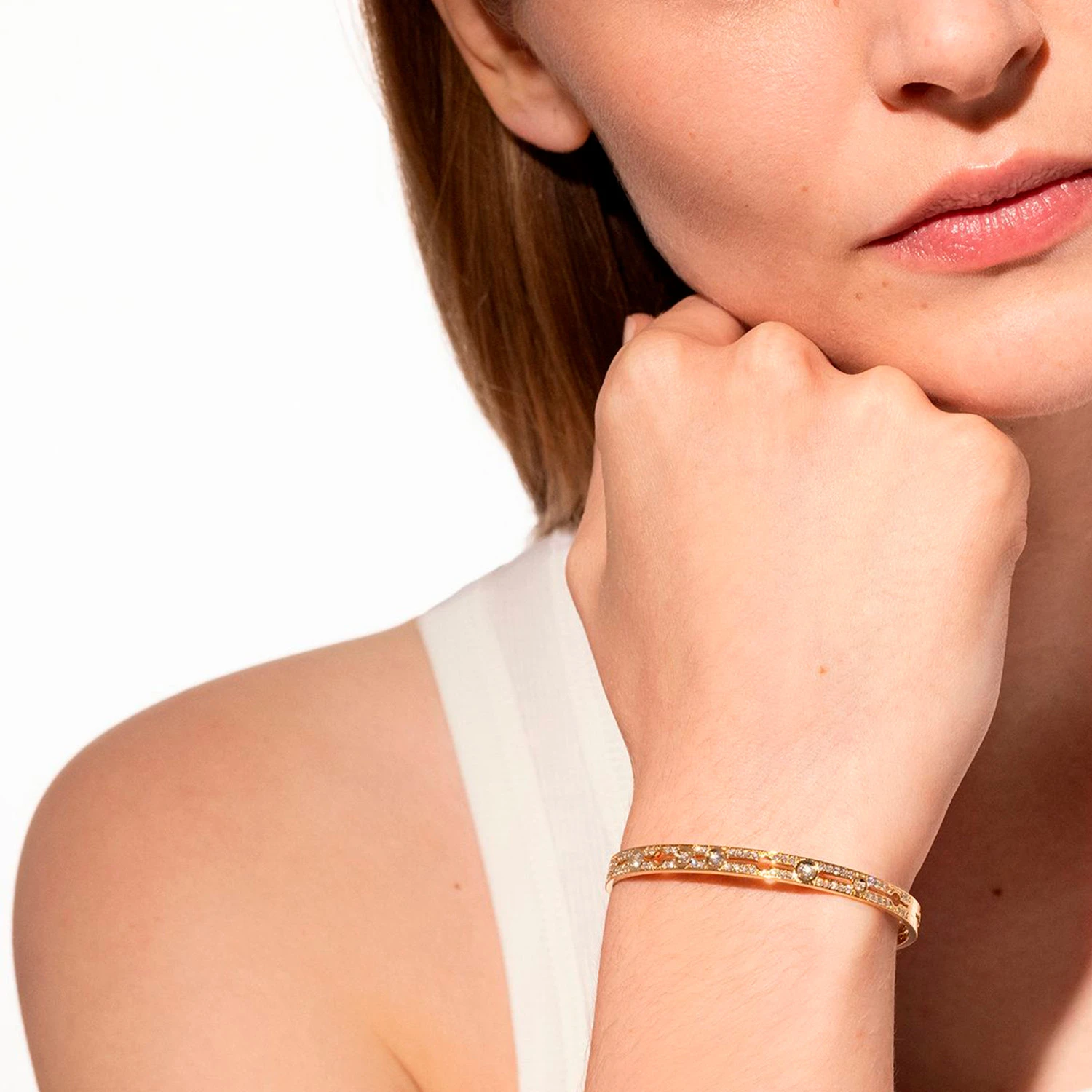 Браслет Pulse из жёлтого золота 18 карат с бриллиантами — изящная интерпретация культовой линии, в которой ритм формы сочетается с тёплым сиянием металла. Чистые изгибы и аккуратная инкрустация создают ощущение движения и света, деликатно подчёркивая запястье. Лаконичный силуэт легко комбинируется с другими украшениями, формируя современную многослойную композицию и сохраняя элегантность вне времени.