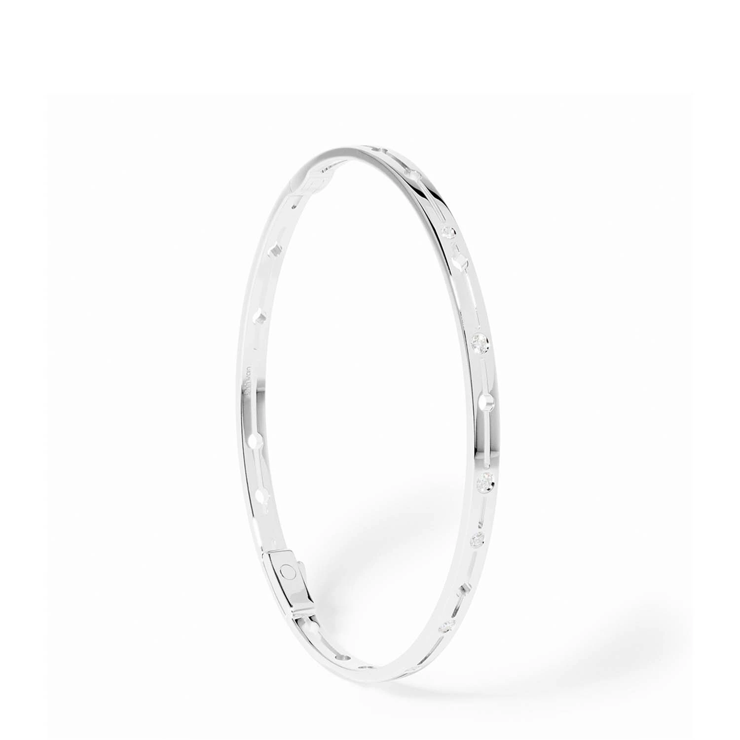 Браслет Pulse из белого золота 18 карат с бриллиантами — изящная версия культовой линии, в которой чистота металла усиливает ритмичное сияние камней. Плавные изгибы и выверенные пропорции создают ощущение движения и света, элегантно подчёркивая запястье. Лаконичный силуэт легко сочетается с другими украшениями, позволяя создавать многослойные композиции и сохраняя современную элегантность вне времени.