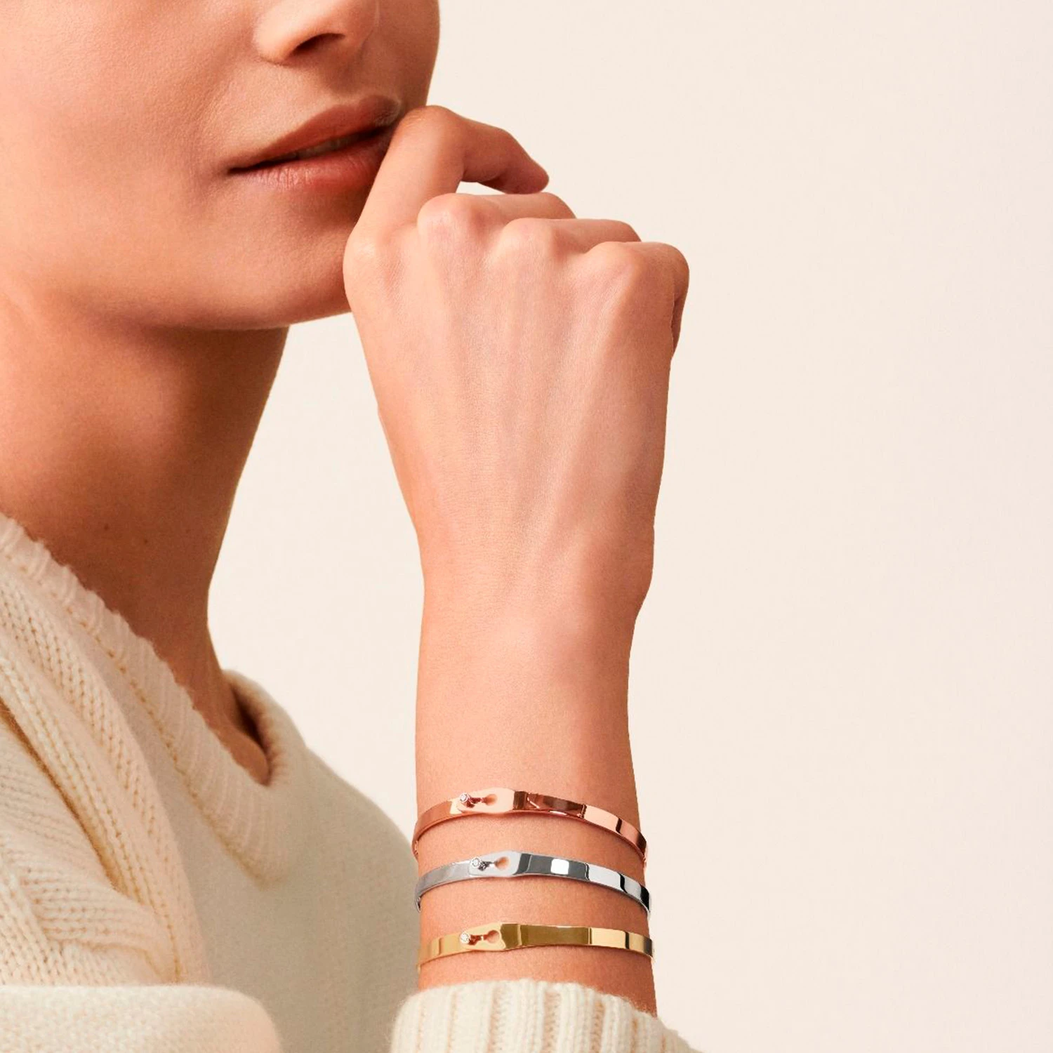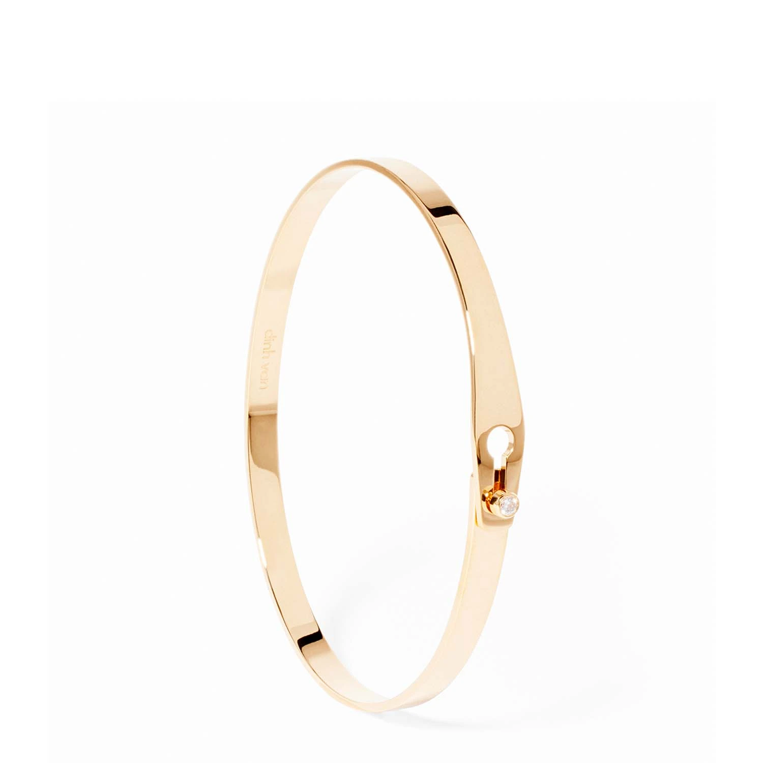 Браслет Serrure из жёлтого золота 18 карат с бриллиантом — утончённое выражение чистой формы. Лаконичный жёсткий силуэт с мягкими линиями лишён лишних деталей, позволяя золоту звучать спокойно и благородно. Небольшой бриллиант деликатно дополняет композицию, добавляя лёгкое сияние и подчёркивая естественную элегантность украшения.