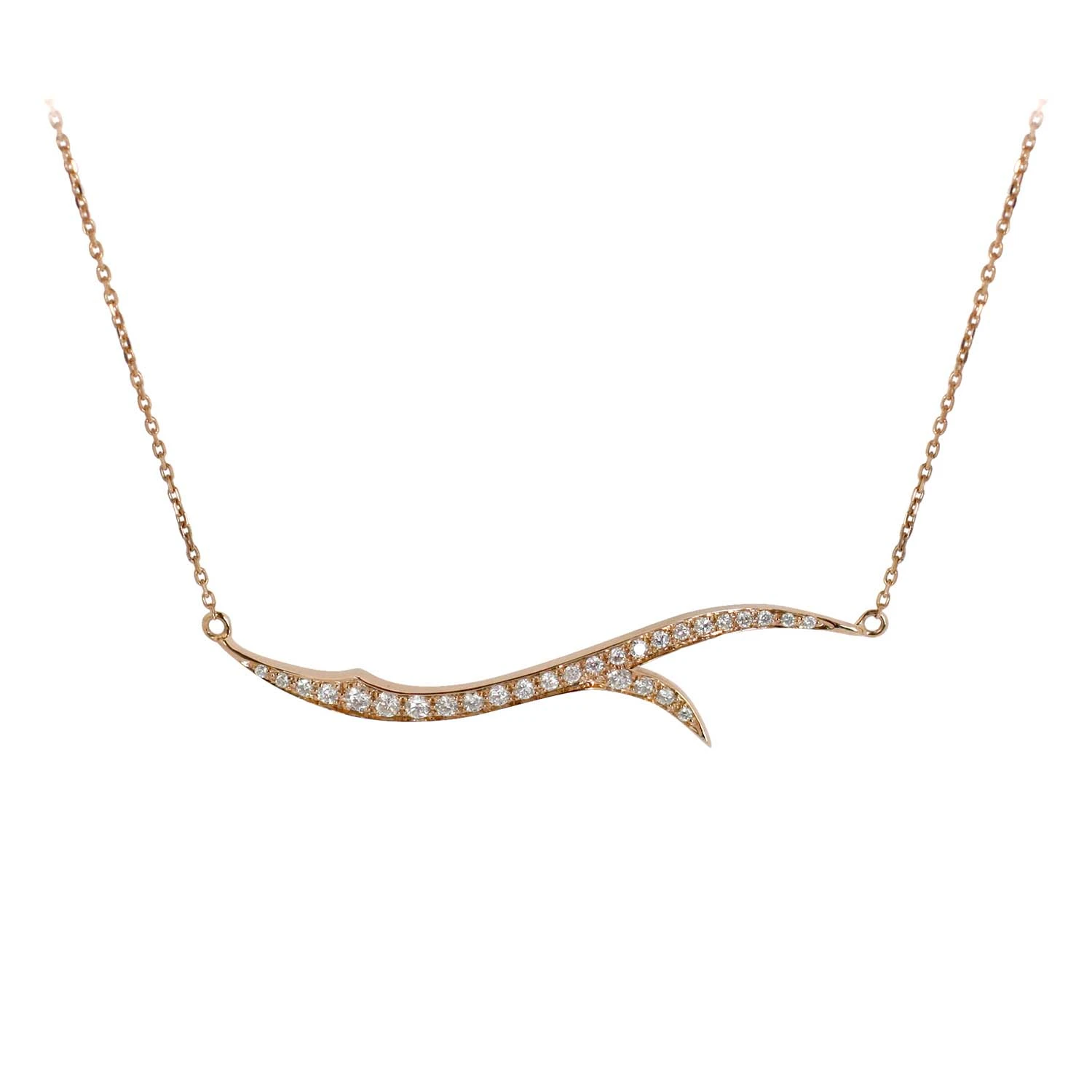 Колье из розового золота 18 карат с бриллиантовым паве на подвеске. Толщина цепочки 0,9 мм. Длина цепочки 43,18 см. Общий вес 3,15 гр.