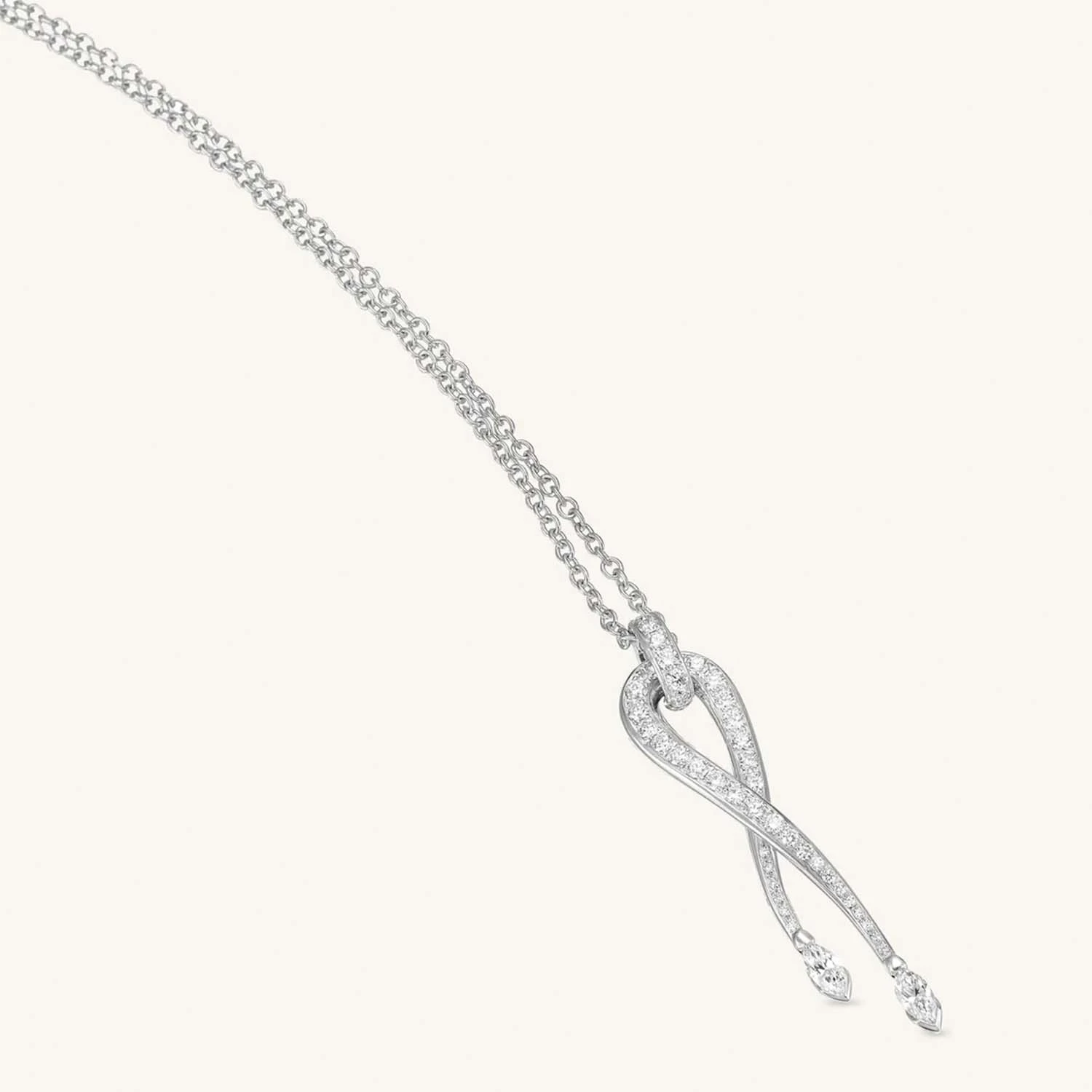 18 karatli oq oltindan yasalgan, brilliantlar bilan bezatilgan You&Me kolleksiyasidan kolye, uning dizayni bir-biri bilan chambarchas bog‘langan va hayotga umumiy nigoh tashlaydigan ikki ruhning birlashishini ifodalaydi.