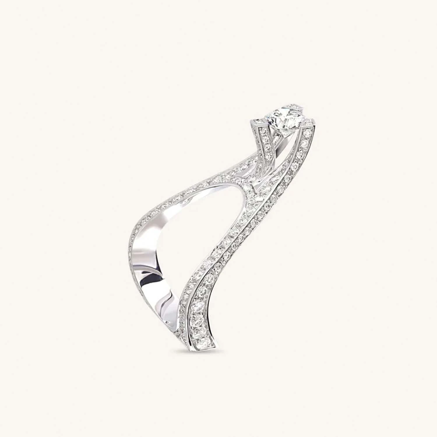 18 karatli oq oltindan yasalgan Palmiero Linearity kolleksiyasidan uzuk nafisligi va o‘ziga xos dizayni bilan hayratga soladi. Noyob shakldagi toshlar kiyilganda jonlanadigan ajoyib optik effekt yaratadi. Bu uzuk har qanday ko‘rinishni mukammal to‘ldirib, unga nafis hashamat va elegantlik baxsh etadigan uslubiy aksentga aylanadi.