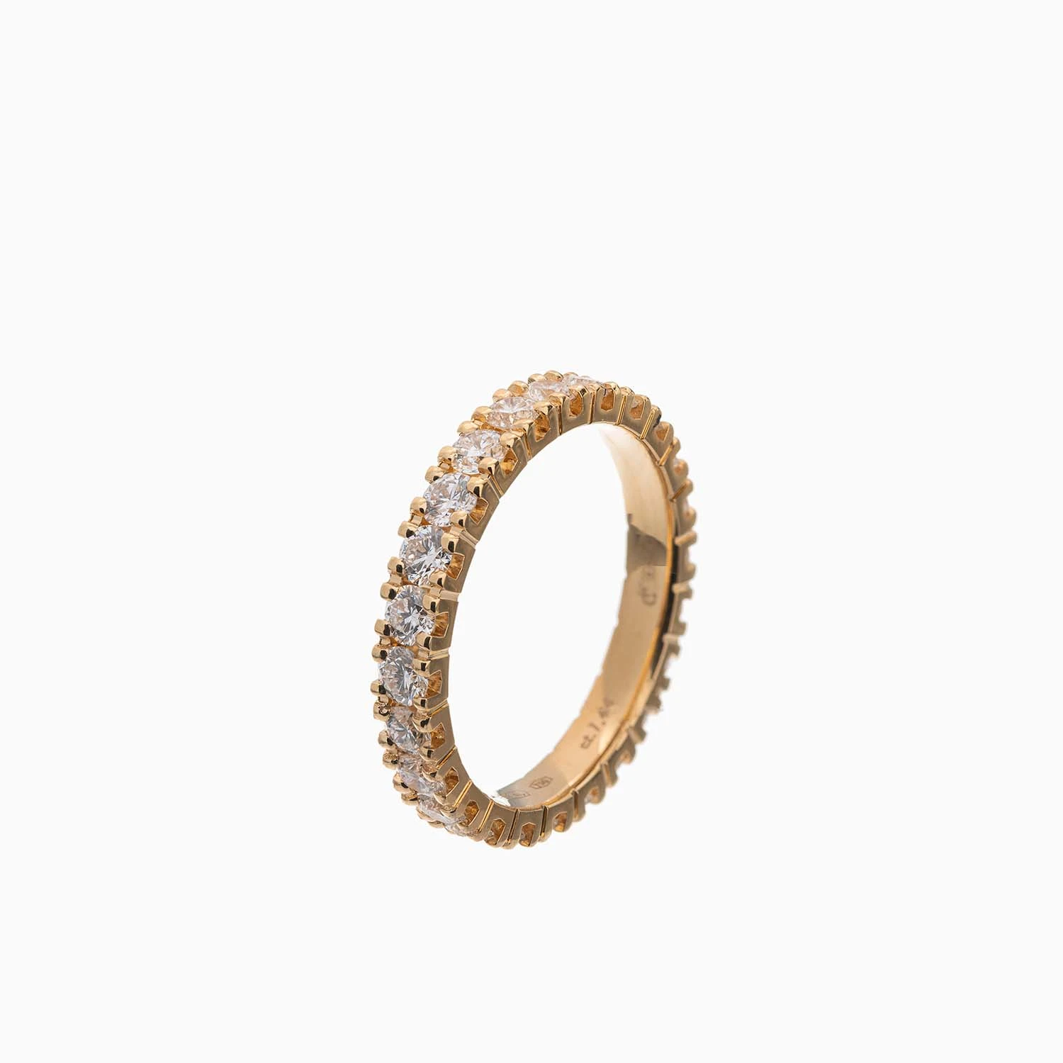 "Abadiyat" uzugi 18 karatli sariq oltindan yasalgan bo‘lib, to‘liq aylana shaklida joylashgan olmoslar bilan bezatilgan. U nikoh uzugi sifatida abadiy muhabbat timsolini mukammal aks ettiradi. Umumiy og‘irligi: 2,65 g.