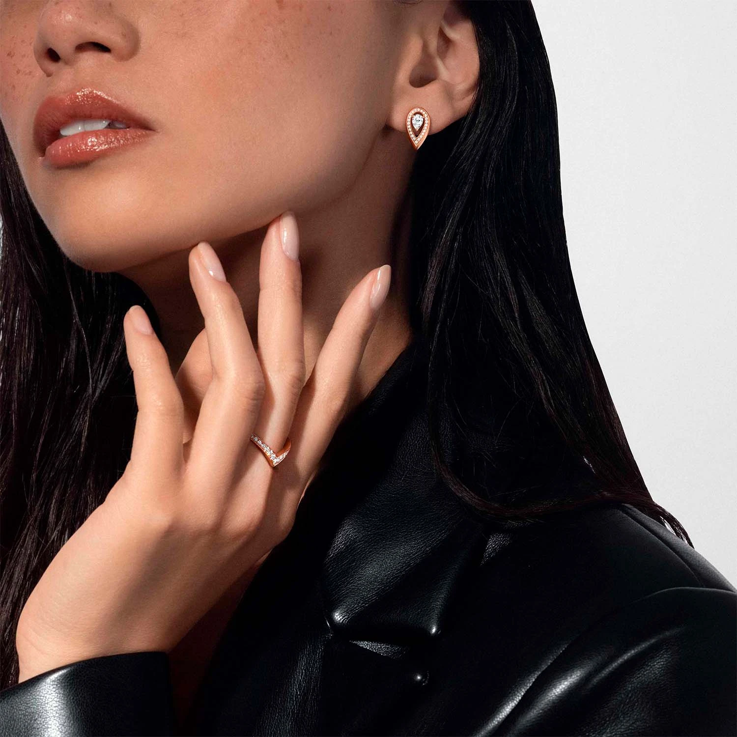 Pushti oltin 18 karatdan yasalgan uzuklar, nok shaklidagi qirqimdagi olmoslar bilan