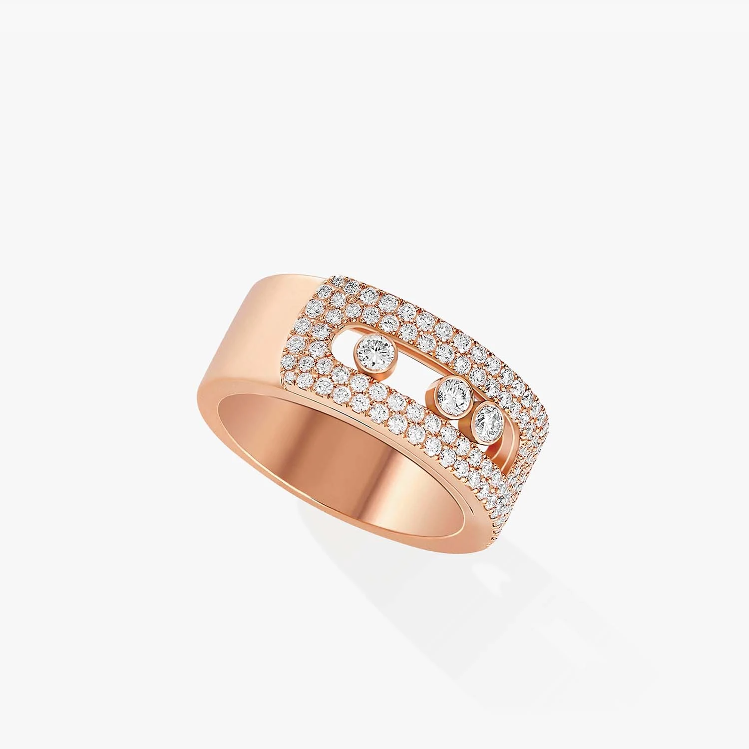 18 каратlik pushti oltindan yasalgan Move Noa uzugi, brilliant pave bilan bezatilgan. Kengligi 8 mm.