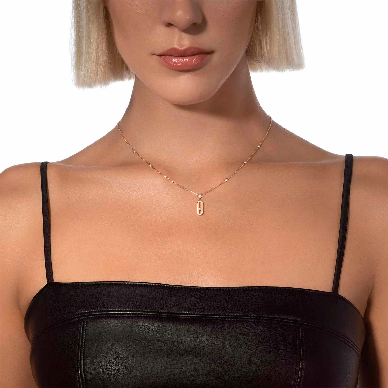 18 каратlik pushti oltindan yasalgan marjon, brilliantlar bilan. Zanjir uzunligi – 55 sm, element uzunligi – 18,5 mm, element kengligi – 5 mm.