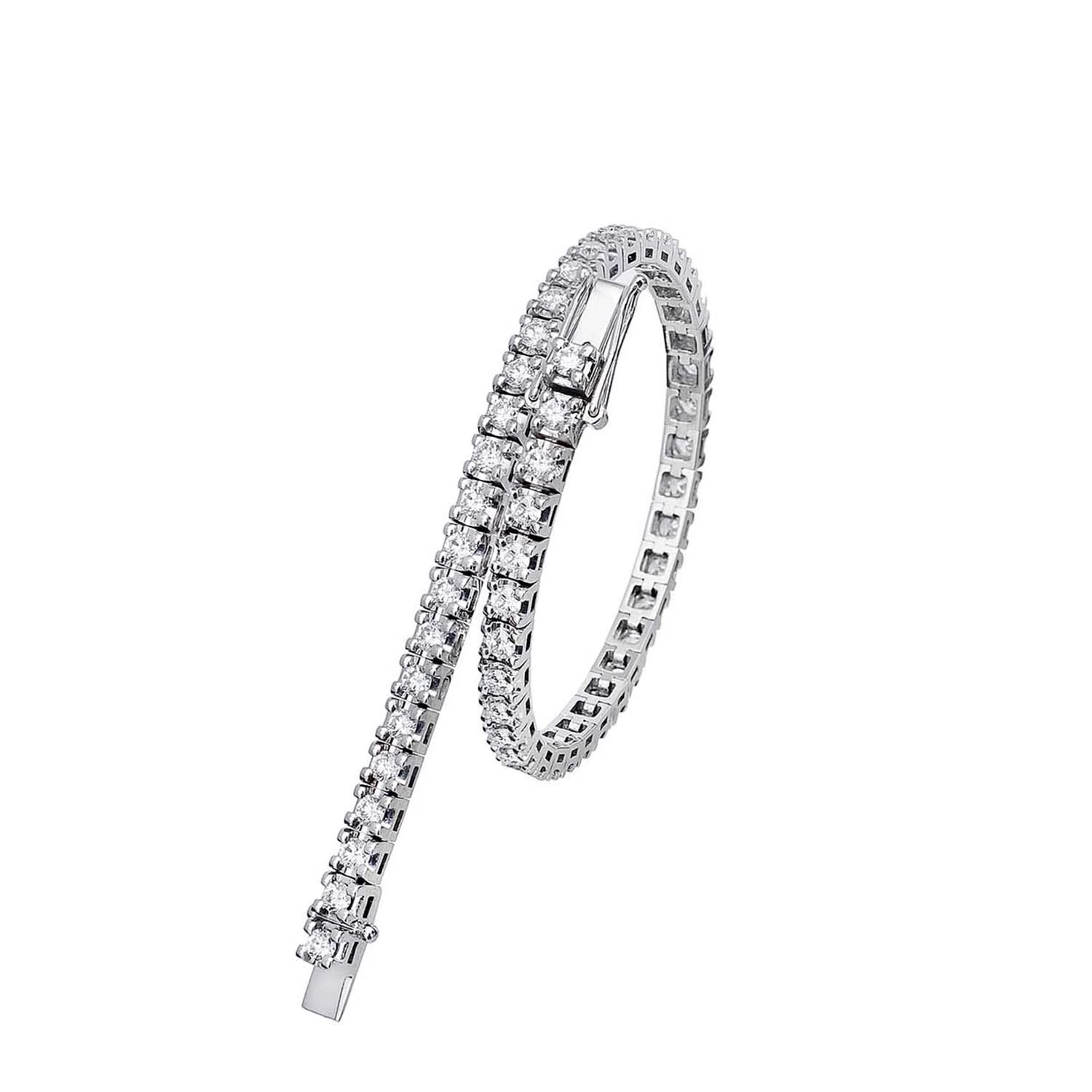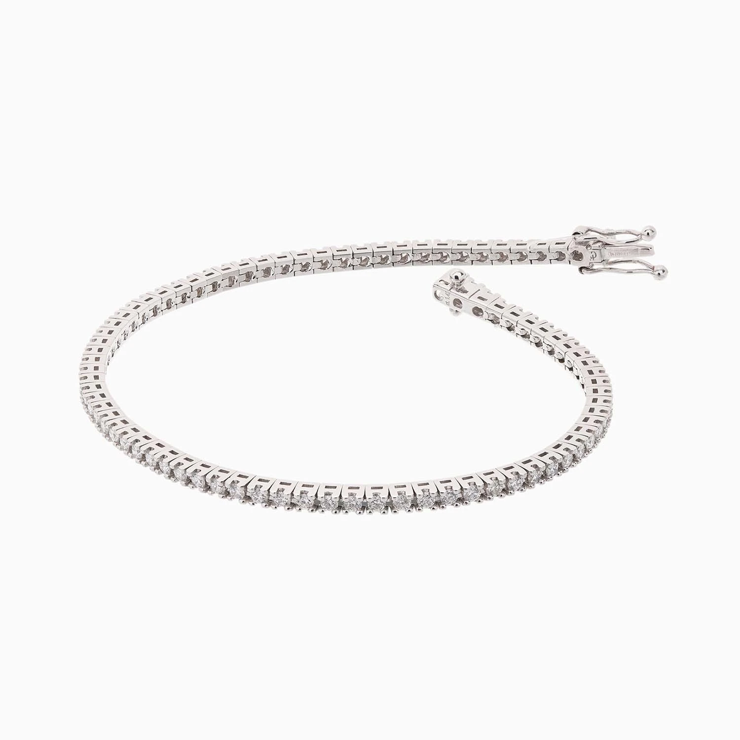 Nafis 18K oq oltin dan yasalgan tennis bilaguzuk, bitta chiziq bo‘ylab terilgan olmoslar bilan bezatilgan. U sizning uslubingizga nafislik qo‘shadi. Umumiy og‘irligi: 7,98 g.