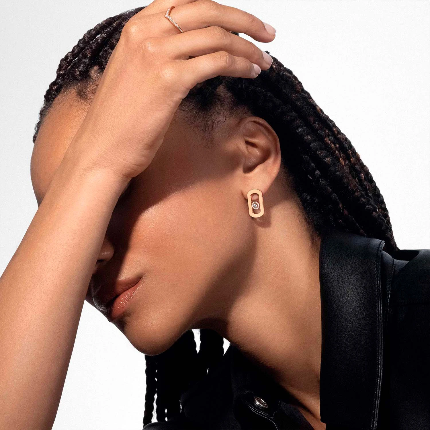 Pushti oltin 18 karatdan yasalgan uzuklar, olmoslar bilan. Elementning uzunligi 20,1 mm, elementning kengligi 10,7 mm